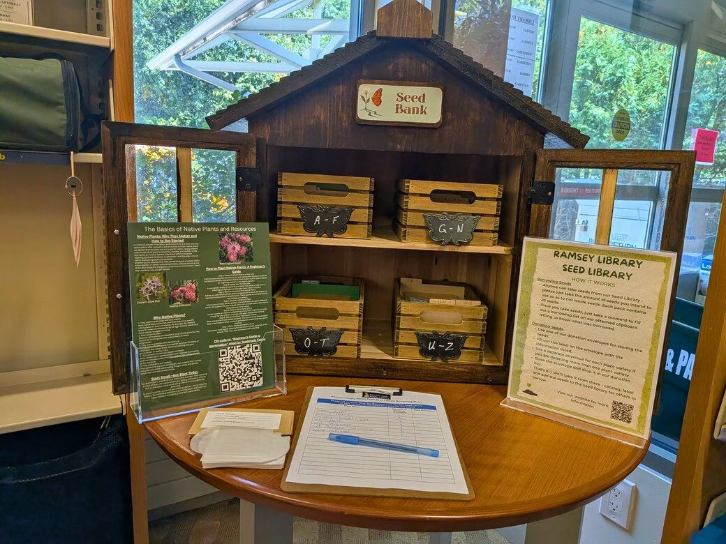 The Ramsey Library Seed Bank was created by Ramsey Girl Scout Payton Ashworth in 2025, in partnership with the Ramsey Public Library, Ramsey Environmental Commission and with guidance from the Native Plant Society of New Jersey.